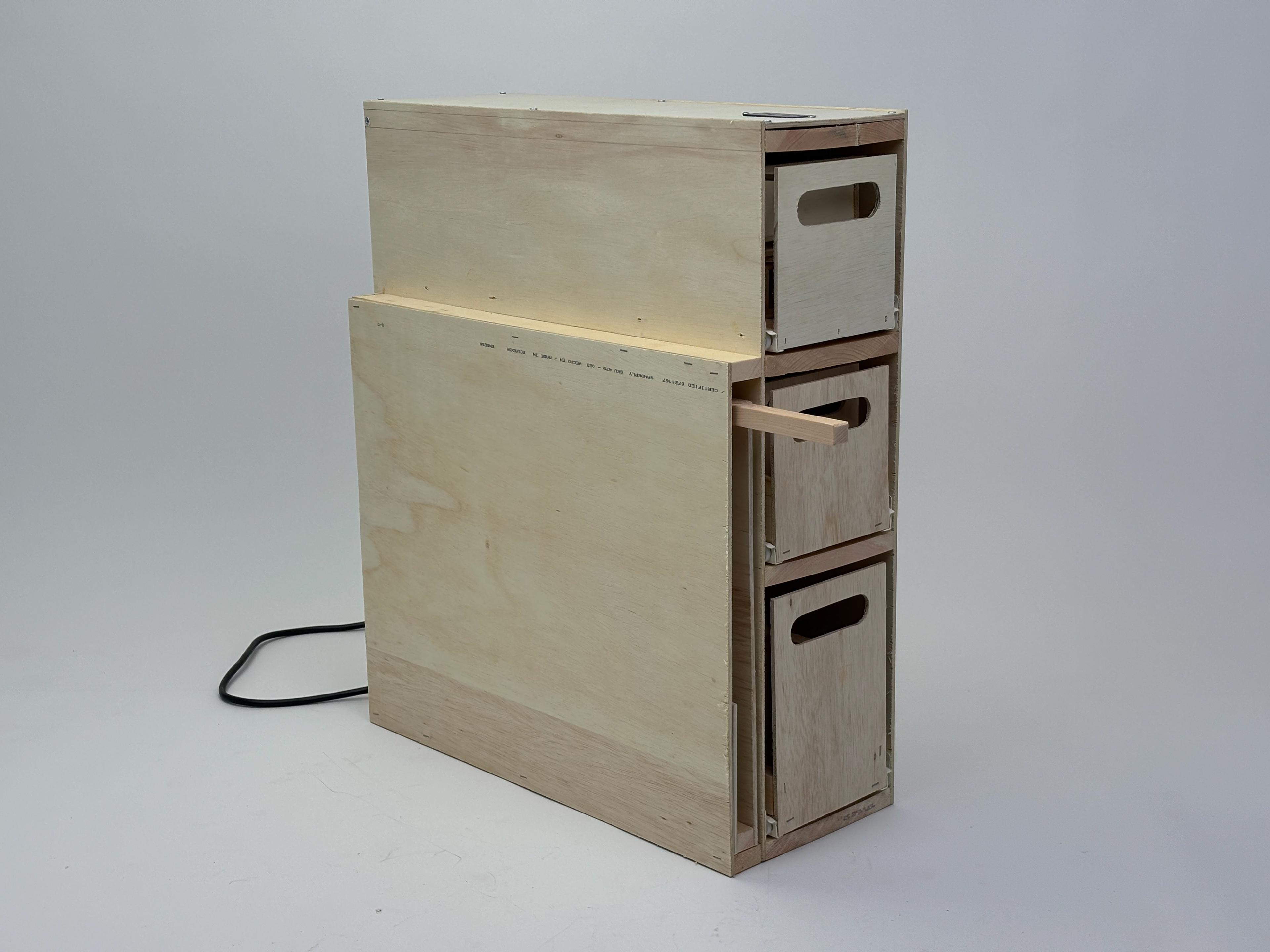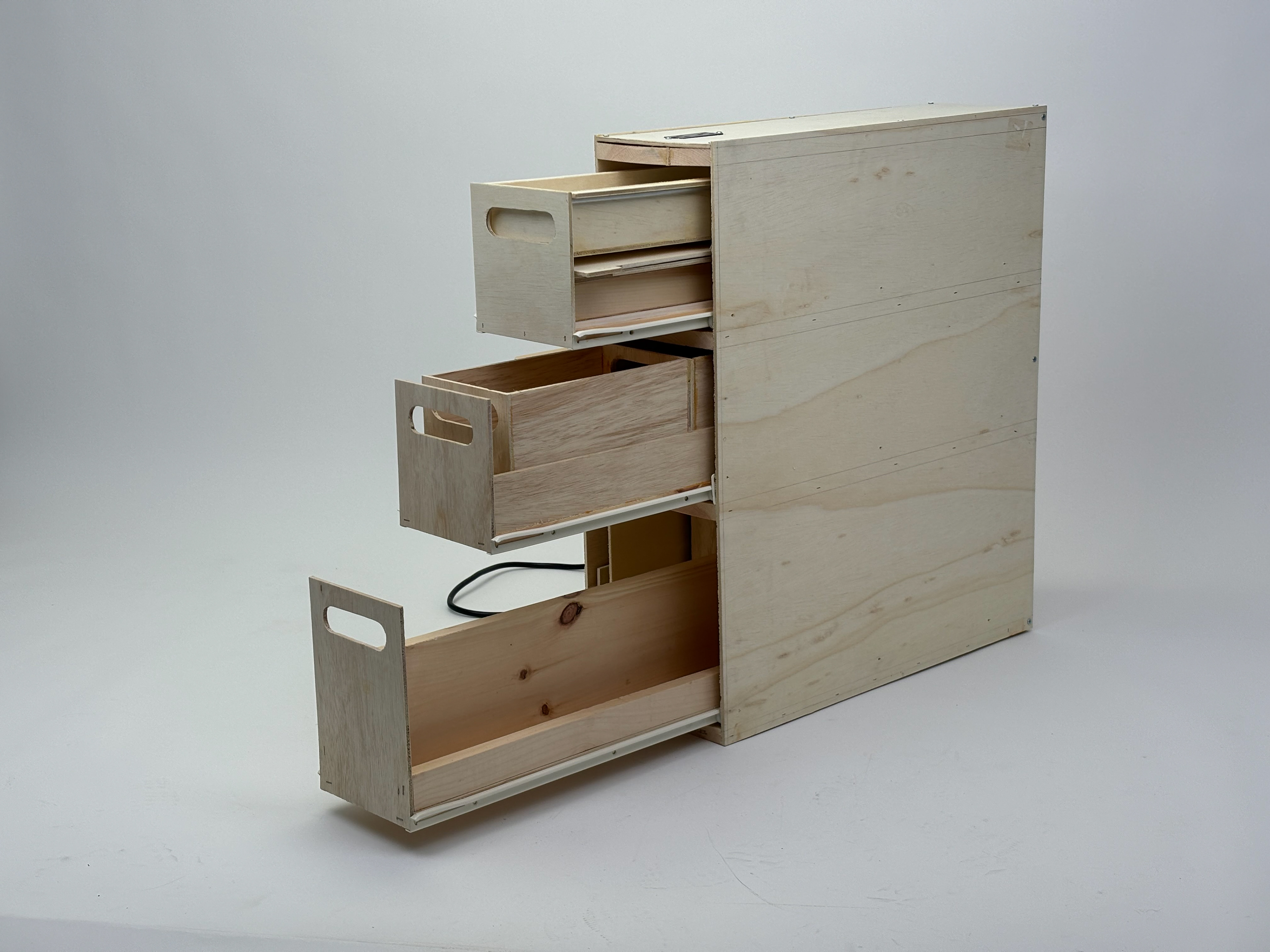 In my college, a common pain point of being an industrial design student is a lack of storage space for supplies, theft of supplies by peers, and poor organization.